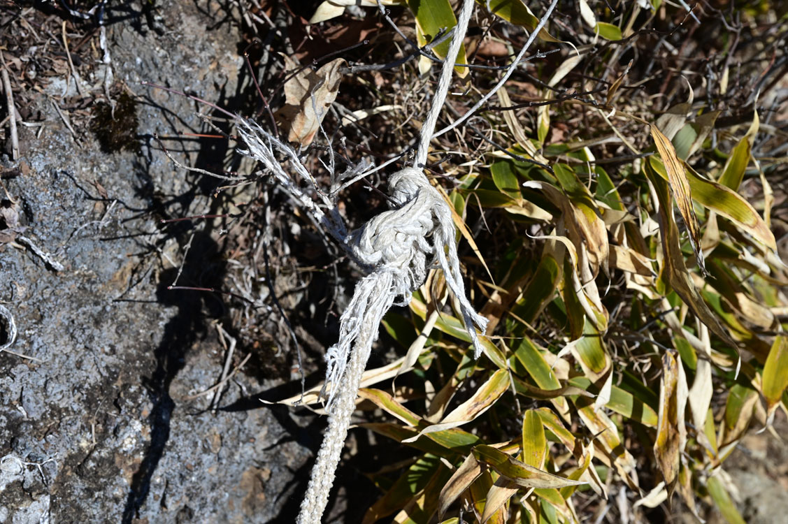 鬼ヶ岳から鍵掛峠経由で下山するルートは登山道が崩れていたり、ロープの状態も悪くイマイチでした。 何年も前に設置した岩場のロープは中心の細い部分を残し、いつ切れてもおかしくない状態でした。