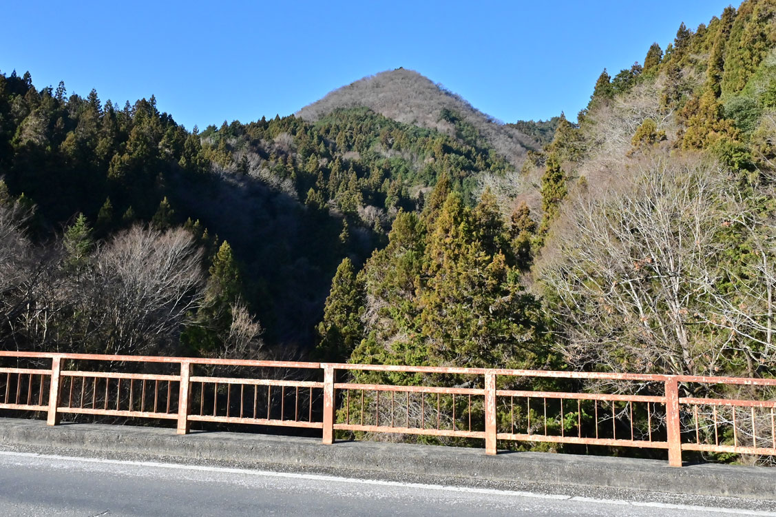 県道33号線から見た要害山です。標高差は300mくらいなので登頂まで1時間くらいでしょうか。